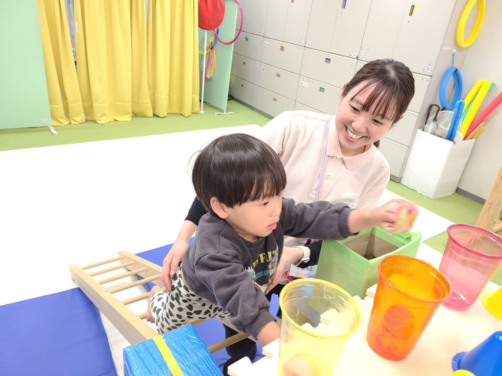 ゆめラボ上永谷教室では、通所の対象年齢に0歳のお子さまも含めています。「座って遊べるようになってから」「ことばが出てから」という条件はなく、気になることがあれば乳幼児期の時期からご相談いただけます。ねんね期・はいはい期など、まだ行動範囲が限られている時期でも、「反応の出方」「抱っこしたときの様子」など、今の月齢なりの視点で一緒に様子を見ていくことができます。