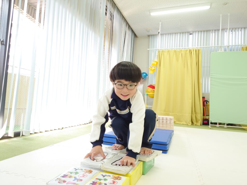広島市南区の児童発達支援事業所として、机上の活動だけでなく、体を大きく動かすプログラムを組み合わせることで、姿勢の安定や集中しやすさにつながるよう工夫しています。