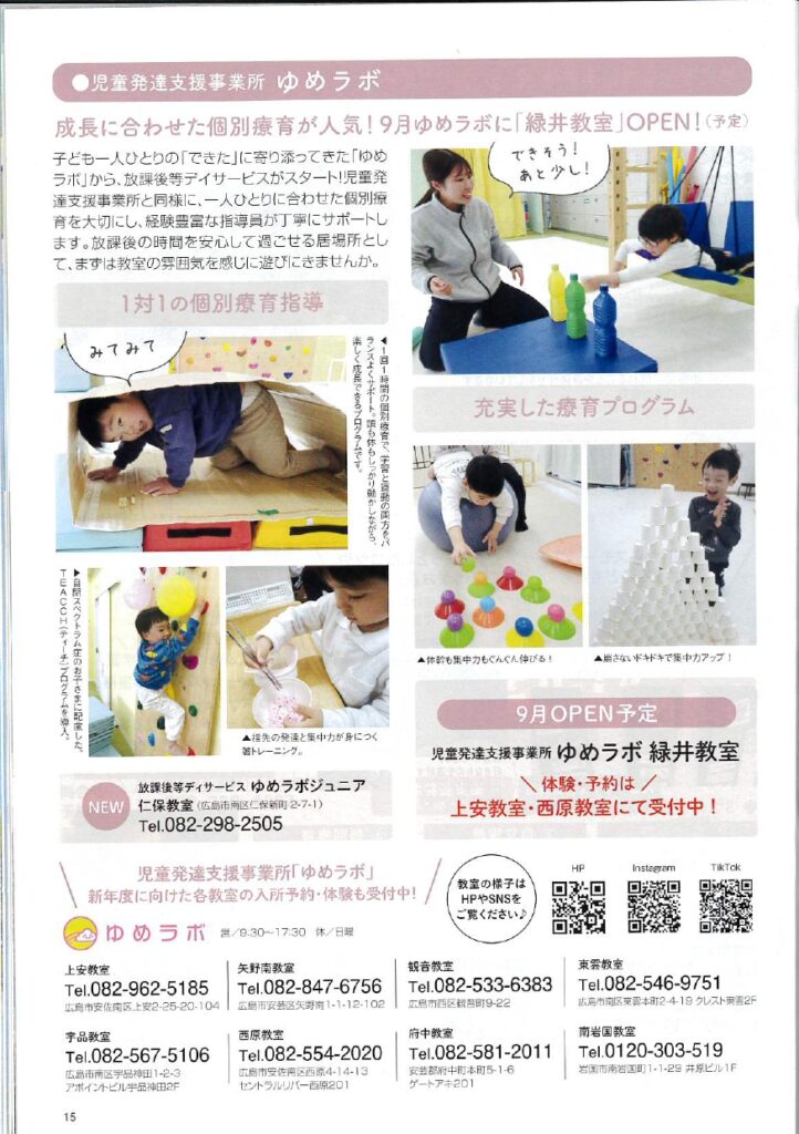 また2026年9月にはゆめラボ緑井教室が新規オープン予定です。同じ広島県内の上安教室、西原教室にて、体験・予約受付中です!
