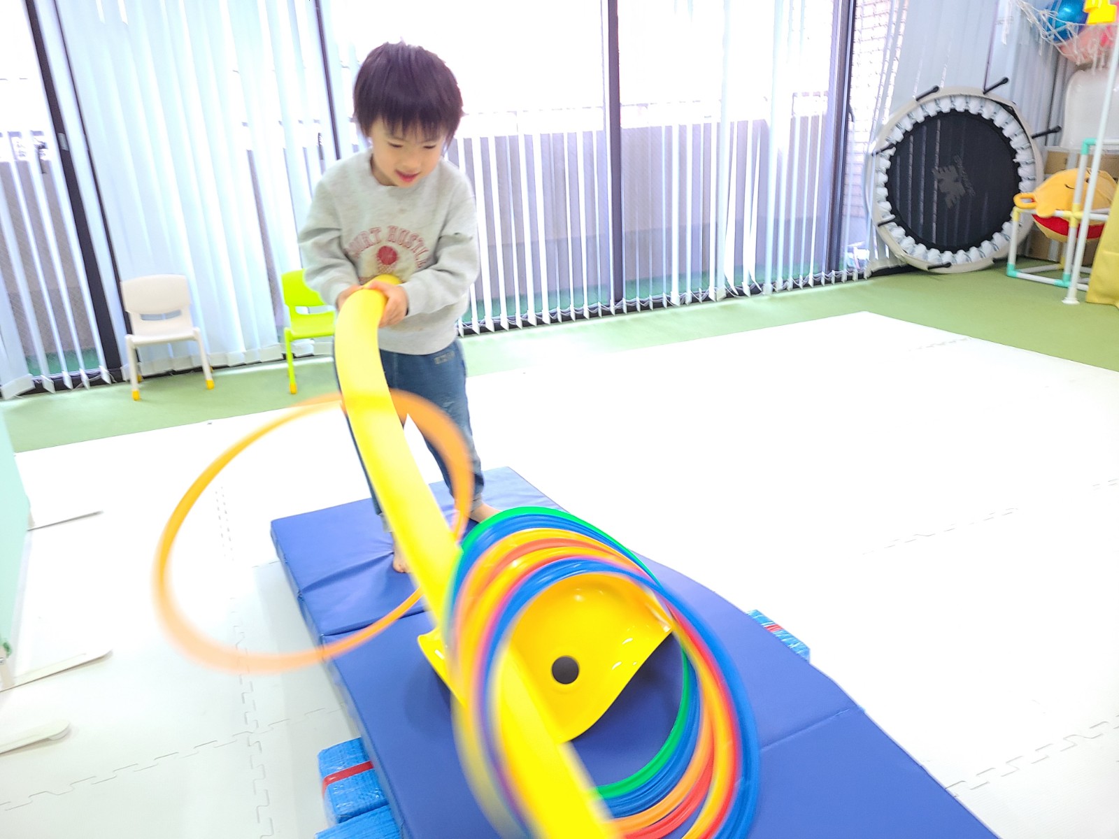 広い運動スペースを活かし、机上課題と運動課題をバランスよく取り入れたプログラムを組み立てるのも大切な役割です。静と動の切り替えを意識した療育を通して、「できた」「わかった」という小さな成功体験を積み重ねていきます。