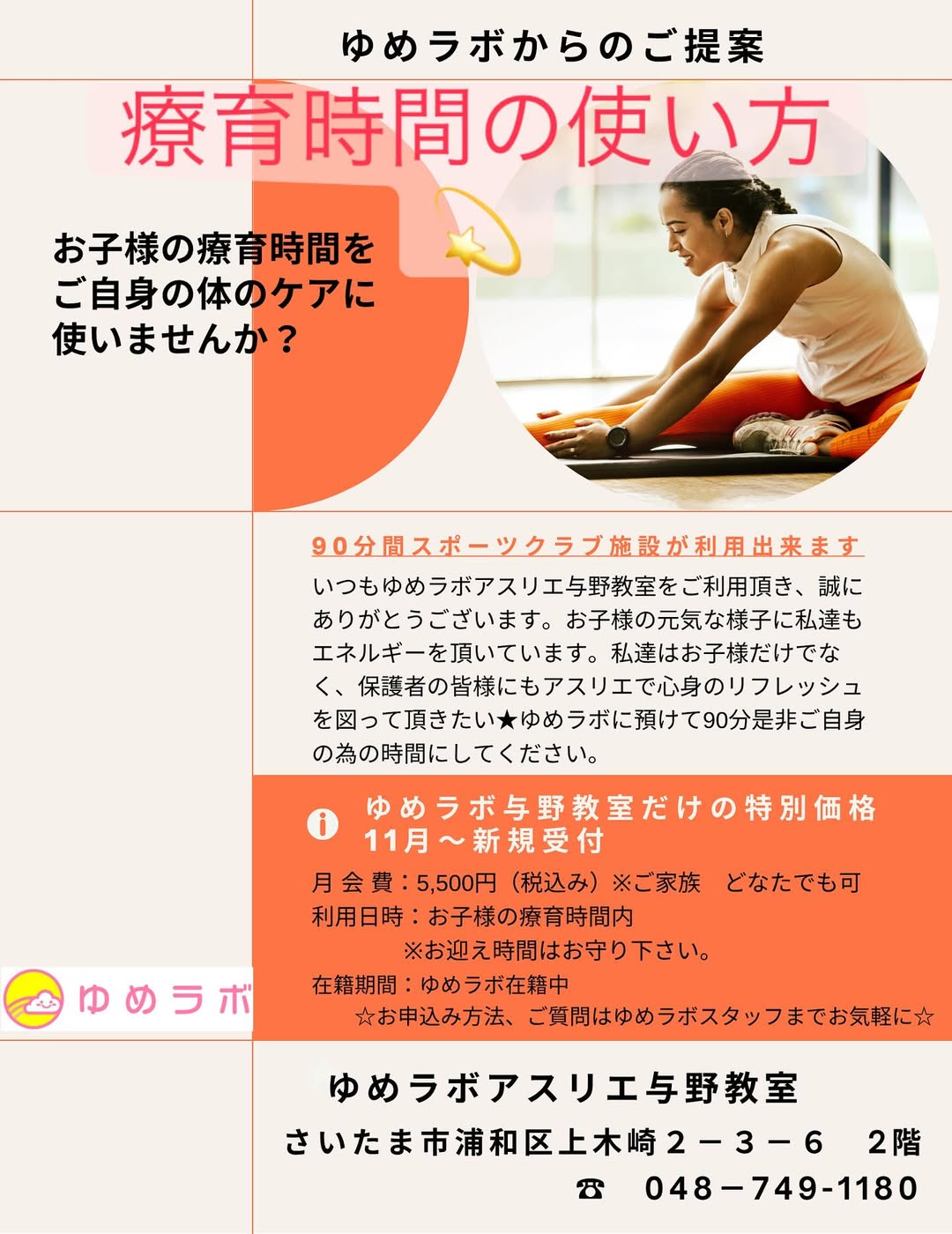 埼玉県の児童発達支援事業所ゆめラボアスリエ与野教室|療育時間に併設ジムが利用できます!