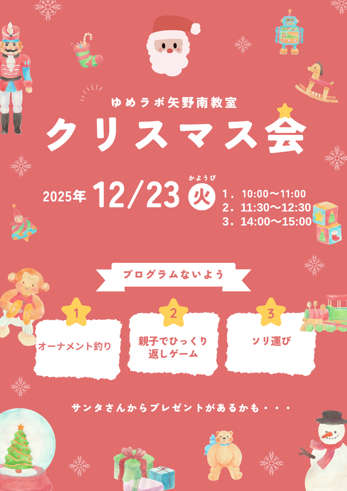 広島市安芸区の児童発達支援事業所ゆめラボ矢野南教室|12月23日クリスマスイベントを開催!